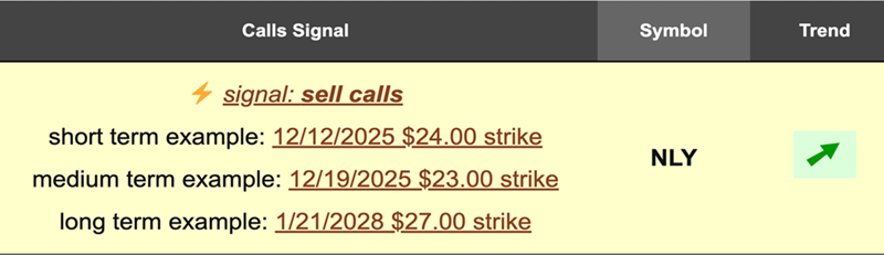 OptionSignals can also be applied to individual stock positions. Take Annaly Capital (NLY), a mortgage REIT that has rallied 5% since we recommended it a few weeks ago.