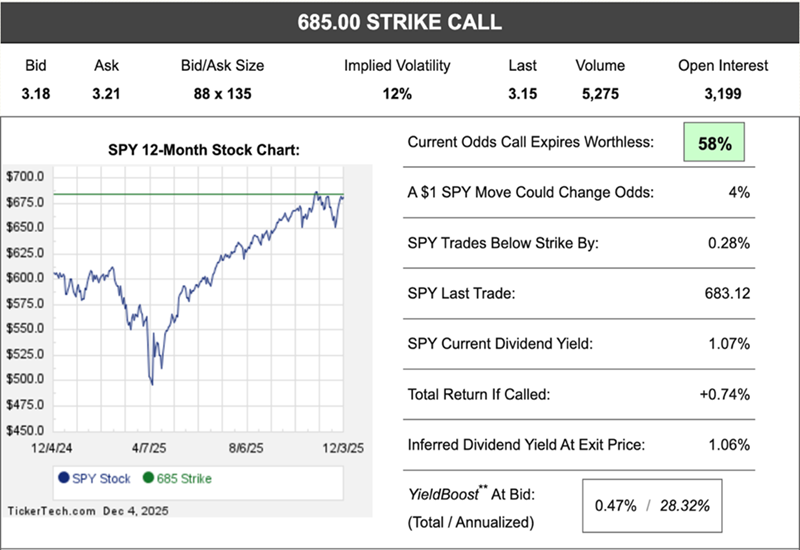 And yes, OptionSignals just happens to have helpful call-writing ideas on sleepy SPY. They show us everything we want to know about this call option, including: