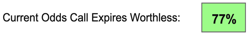 - The odds that the call will expire worthless—which is important if I prefer to keep this position. OptionSignals is telling me it’s a coin flip—58%—that these shares will be called away from me.