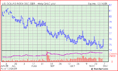 We think the dollar is the lynchpin to the whole equation, and that a dollar bottoming should roughly coincide with a top in the other markets. Friday was an encouraging sign, as the dollar rallied sharply. Has it finally put in a low? We shall see!